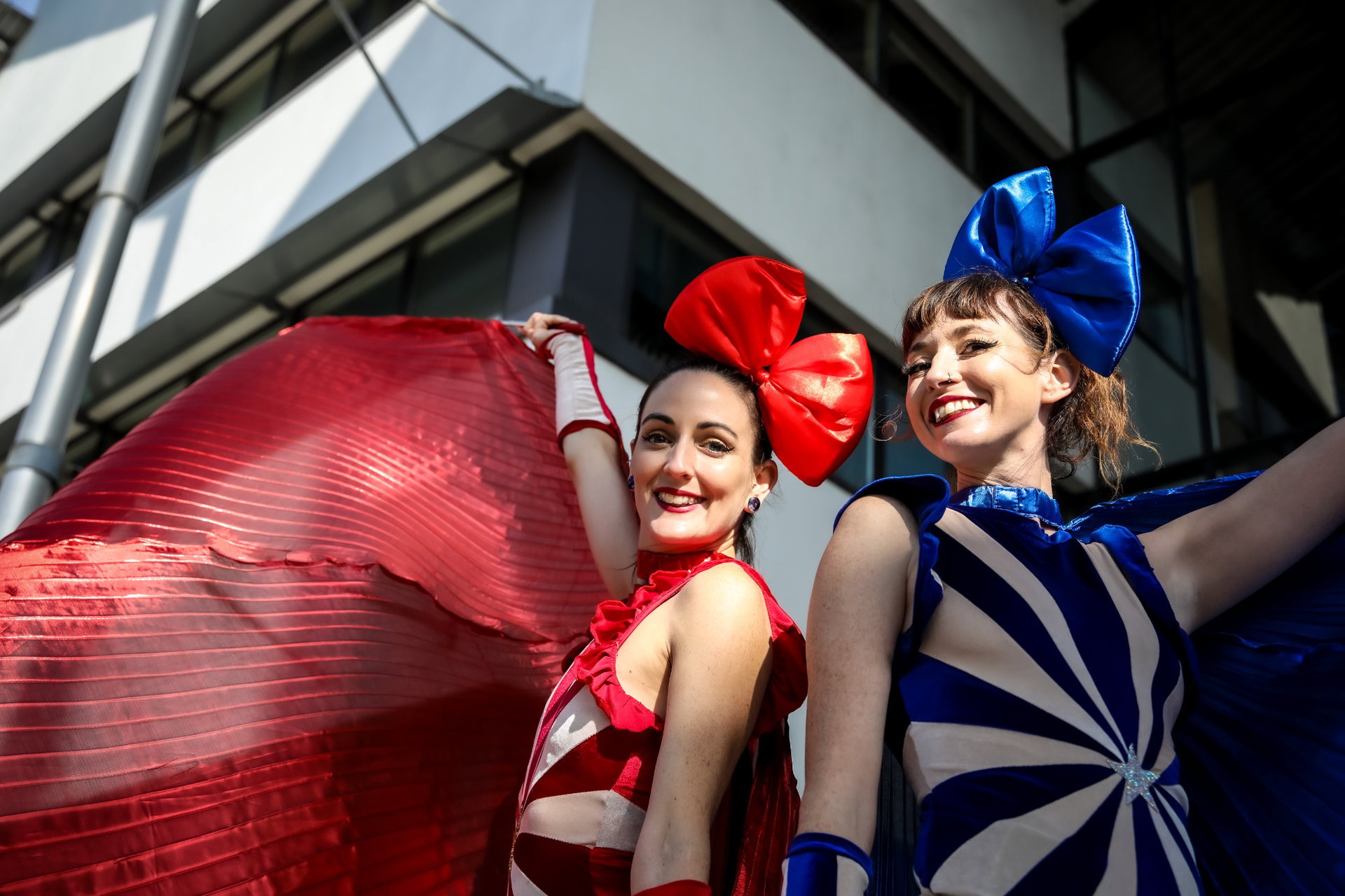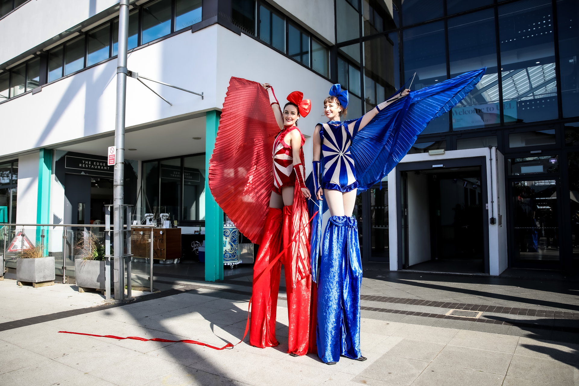 Ideal for circus, Vegas or Greatest Showman themed events, Big Top Circus Stilt Walkers are available in red or blue costume and can perform at both indoor and outdoor events.