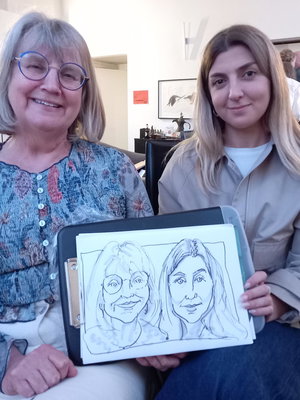 Chris will create drawings of you and your guests that will look like you and that you can treasure. Chris can draw individuals or couples or groups. He is very good at drawing children.He's quick. About 3 or 4 minutes per drawing