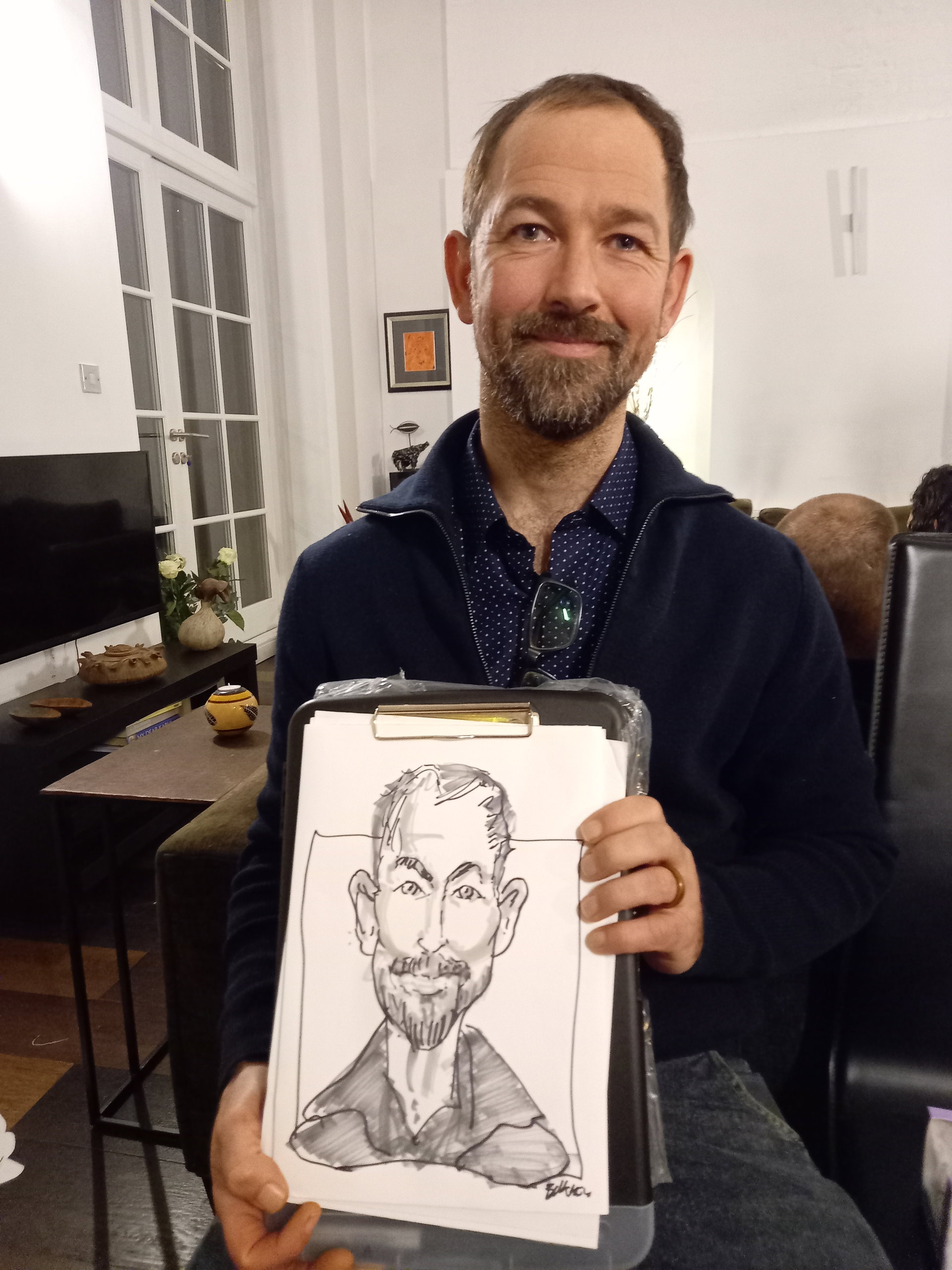 “We had made the right choice picking Christopher for our event. He was very friendly and easy going. So calm all the way through! Would definitely book him again and would also recommend him to others. The guests loved their drawings and it was a perfect addition to the evening.”
