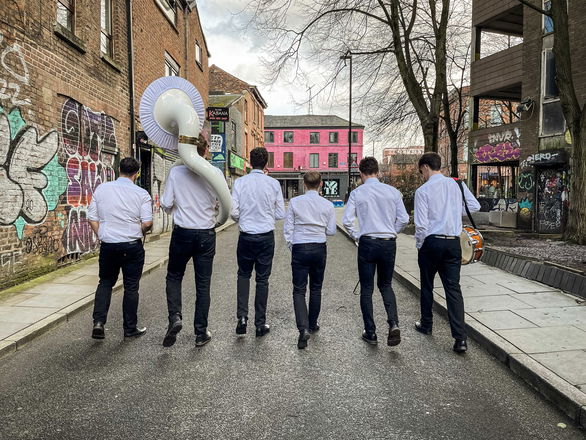 The core lineup features two trumpets, two trombones, a sousaphone, and a drum kit, but they’ve performed with up to 15 musicians and even teamed up with samba bands for larger events.