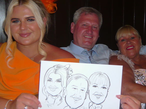 “Ivor quietly went around the room intrusively giving our son’s wedding an extra dimension. Only later did I find out that our guests had been thoroughly entertained by his work. Would definitely recommend. Our own ‘portrait’ now takes pride of place in our bar and is always a great talking point. Thanks Ivor.”