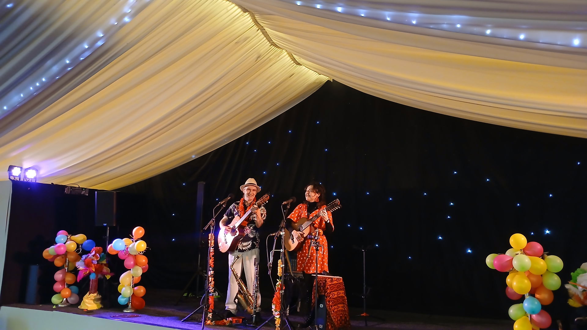 Alongside their classic duo sound of guitar, sax and vocals, these two versatile players keep the sound fresh & spontaneous by adding clarinet, flute, banjo, Latin American instruments and percussion, bringing something new and unique to complement their treatment of the classic jazz standards and sounds - the influences of greats such as Ellington, Getz, Jobim, Django Reinhardt and Cole Porter can be heard alongside the Buena Vista Social Club, Perez Prado, Compay Segundo and others.