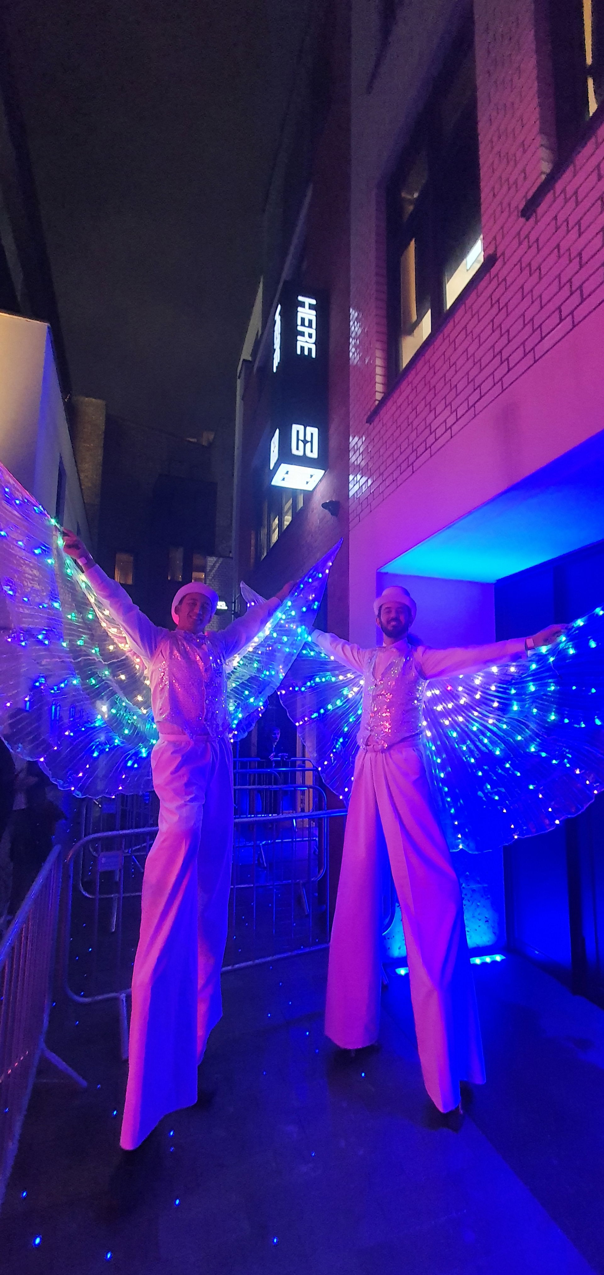 Other performance elements such as glow, contact juggling, balloon modelling, bubbleology etc. can also be provided whilst on stilts.
