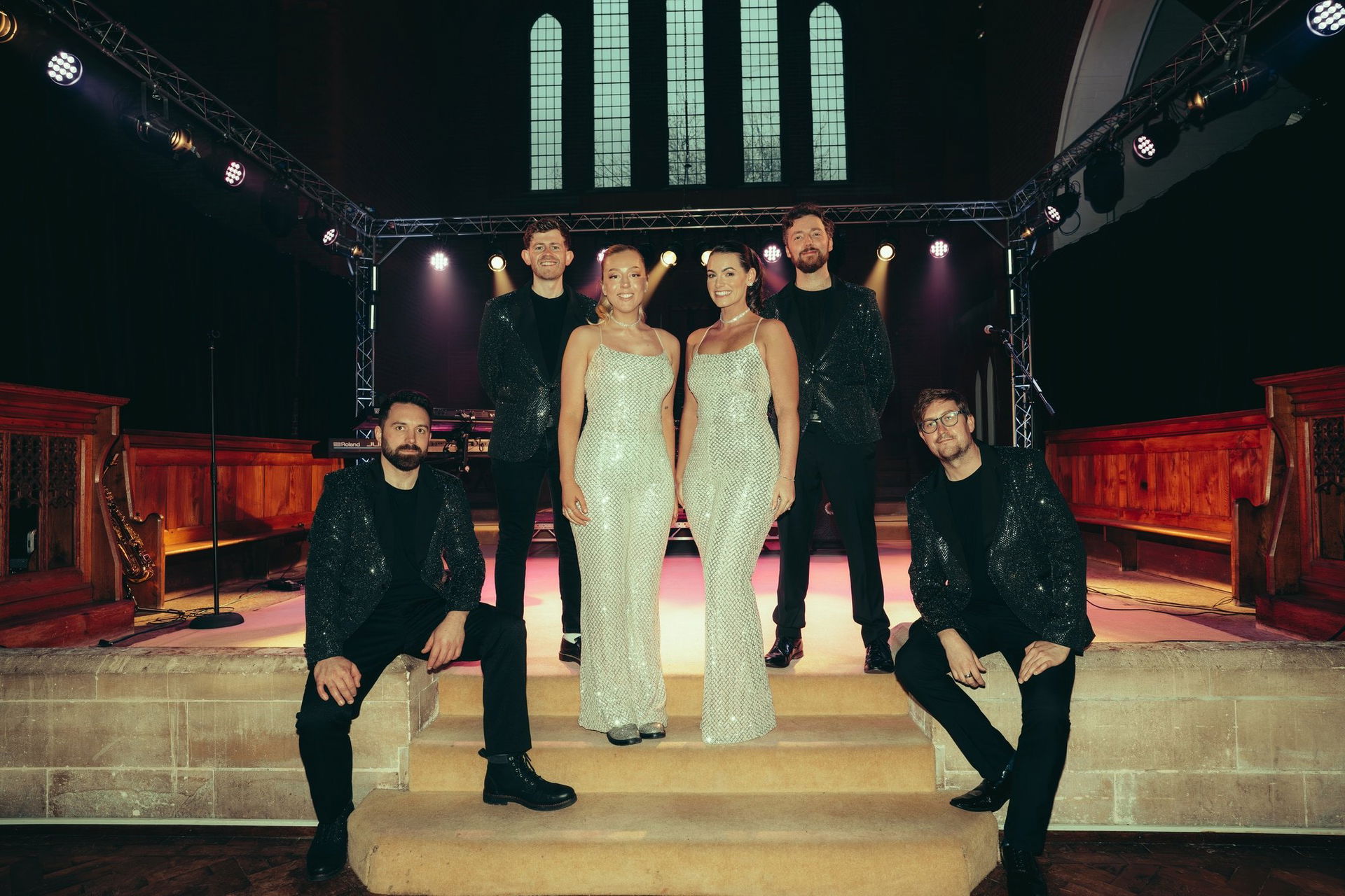 6 Piece: Lead Vocals, Lead Vocals/Sax, Guitar, Bass, Keyboards, Drums.