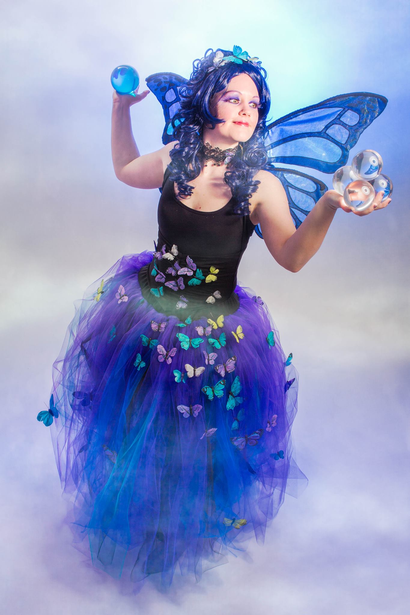 The Blue Butterfly is a Contact Juggler and Circus Artist working across both corporate and public entertainment, currently based in East Anglia. After many years of dedicated training and refining her distinctive style of Contact Juggling alongside a range of circus disciplines, she has established herself as a highly respected and sought-after performer.