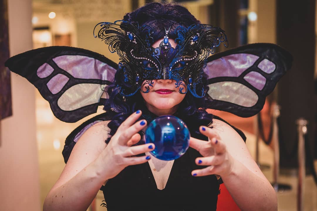 Contact Juggling — often known as Crystal Ball Performance — is a mesmerising and highly specialised art form. Typically performed with one or more crystal balls, it blends elements of circus and illusion to create a truly hypnotic visual experience. Whether welcoming guests on arrival, providing intimate table entertainment, or presenting a choreographed act as part of a larger show, The Blue Butterfly and her crystal spheres consistently captivate, amaze, and enchant audiences, leaving them with a magical and unforgettable experience.
