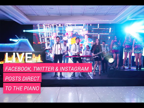 The Visual not only offer you one of the best function bands in the World but they have a completely unique, state of the art hand built grand piano which is fully customisable to your event. The piano is used to animate the band’s performance throughout the show giving an amazing visual show while the band give you an incredible musical performance. The piano gives a new meaning to corporate entertainment as you can also display your company logo, products and adverts upon the 10ft LED Displays. And for weddings allow the band to wow your guests with graphics to match your colour scheme or pictures of the happy couple and their family. Any event can be catered for! There is even possibility for there to be a twitter feed during the event so people can send message or pictures to the piano during the event!