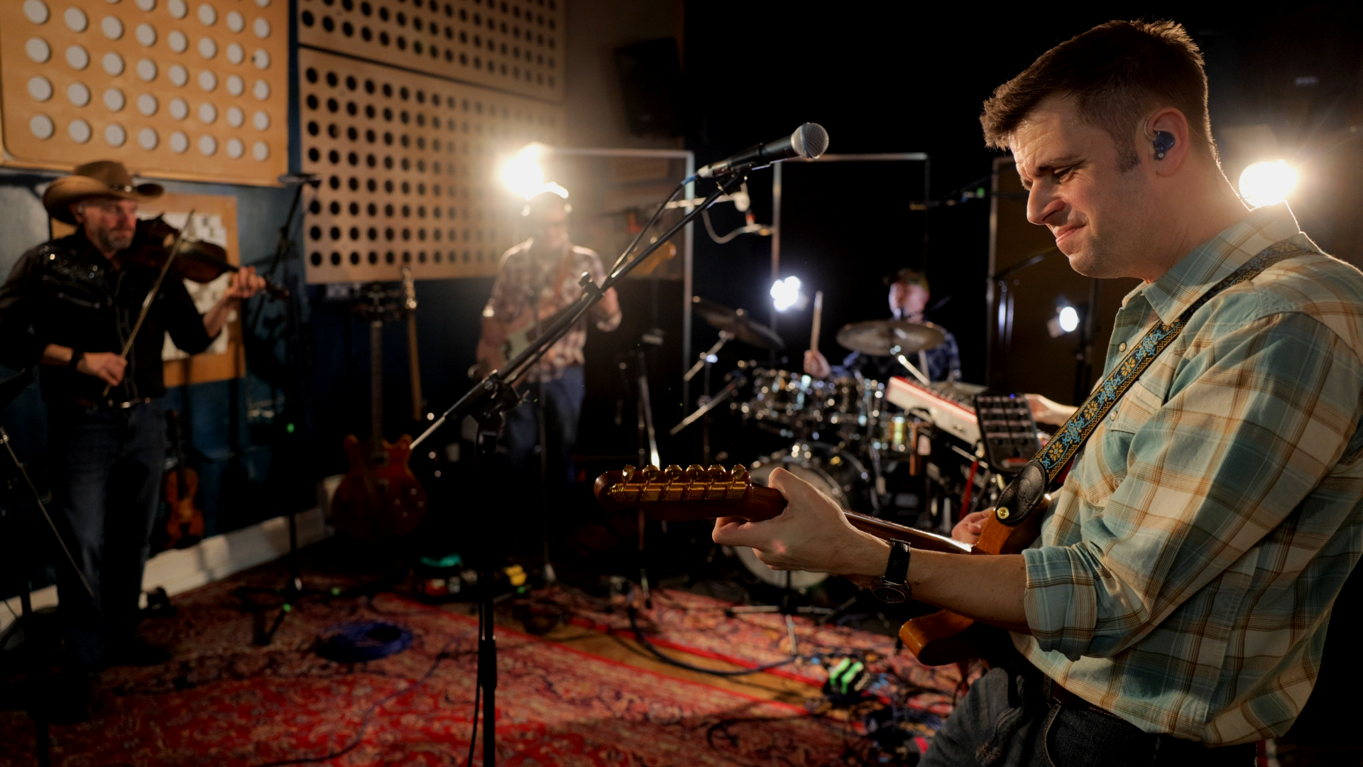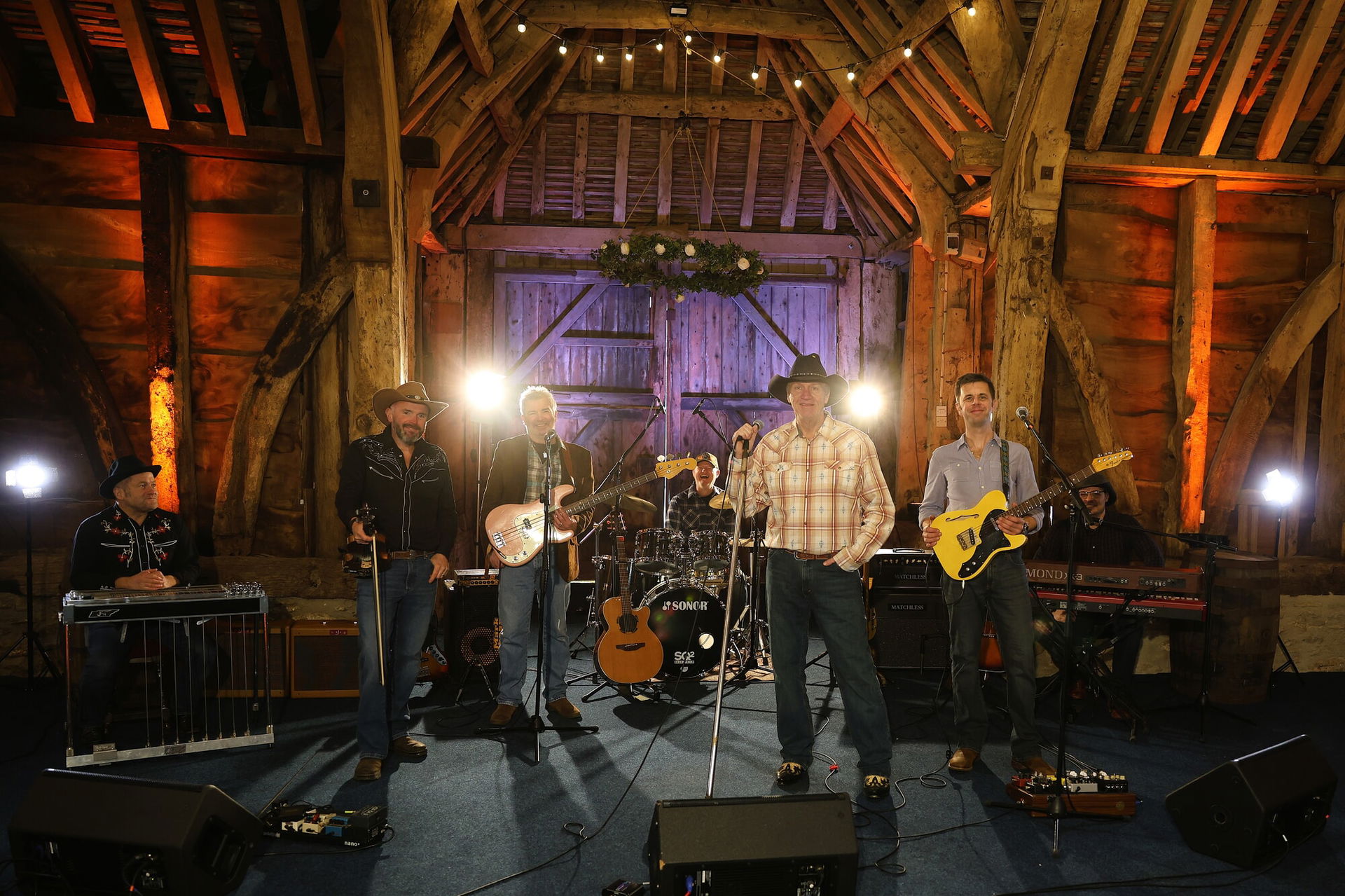 7 Piece Line-up: Lead vocals / Acoustic GuitarElectric guitar / Backing vocalsFiddleKeyboardsBass guitar / Backing vocalsDrums / Backing vocals plus pedal steel guitar / Backing vocals