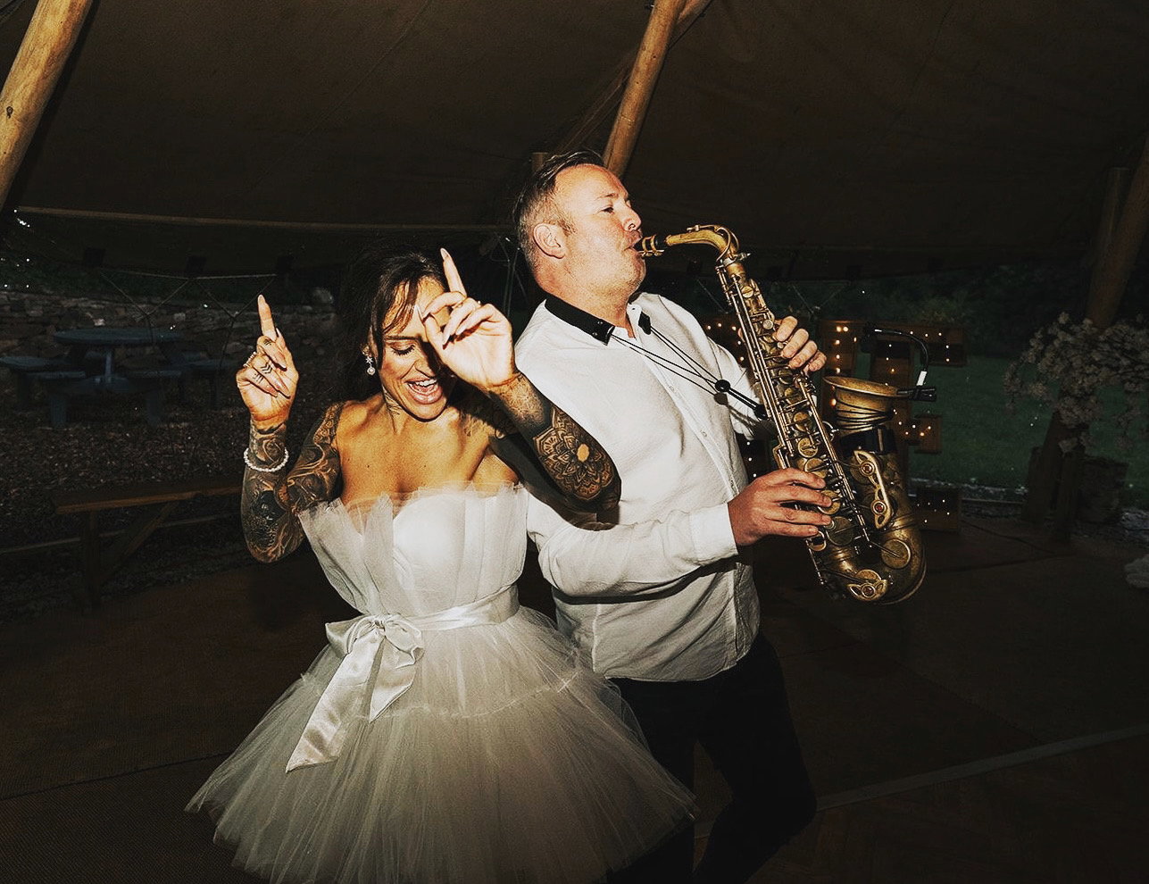 “Mark was awesome! Really enhanced the whole flow of our wedding and gave the guests something to enjoy whilst we were off taking photos! Set the vibes for the day perfectly. It was especially important to us having Mark perform as it was a nod to my late grandad who used to play sax in a band many years ago. We can’t thank you enough! 100% recommend!!”