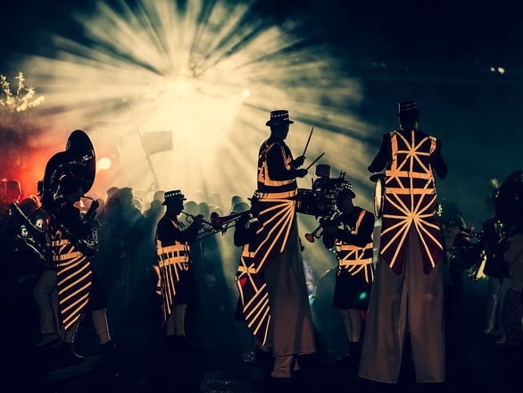 6 Piece Brass Band: 4 x Horn Players, 2 x Percussionists* Please note Long Legged Brass can perform as a roaming act or stage act. Please state which type of act you'd require at time of enquiry.