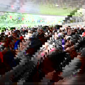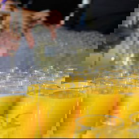 They were greeted with a Champagne reception outside!