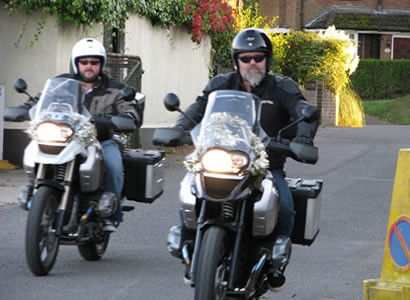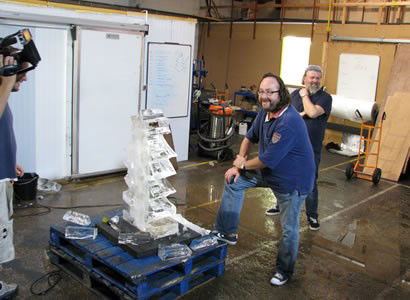 Filming for their Christmas Special to be aired in early December, Si King and Dave Myers – aka The Hairy Bikers – sped in at high speed on their BMW R1200GS motorcycles to our ice sculpture supplier's studio.